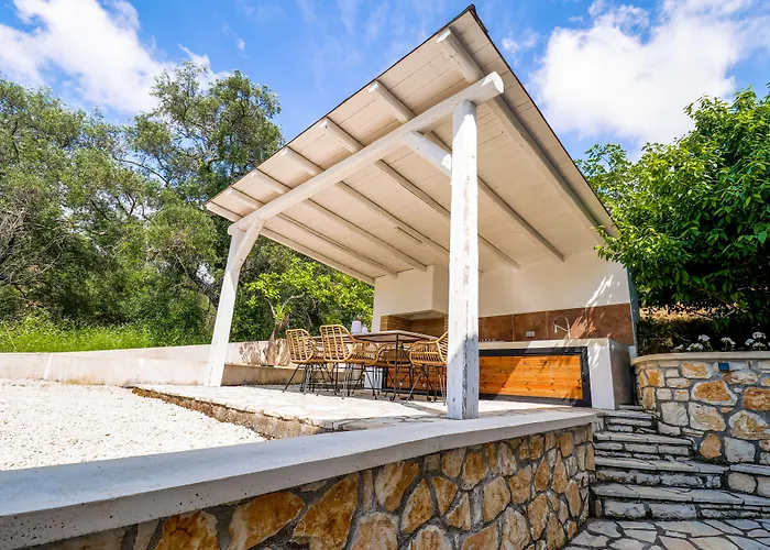 Moute House By Corfuescapes Villa med 2 sovrum, som har en uteplats med utsikt över trädgården, ligger 35 minuters bilresa från flygplatsen Ioannis Kapodistrias, Korfu. Villan med 2 badrum, som har soldäck, solterrass och picknickområde, ligger ungefär 10 minuters bilresa från Monastery.